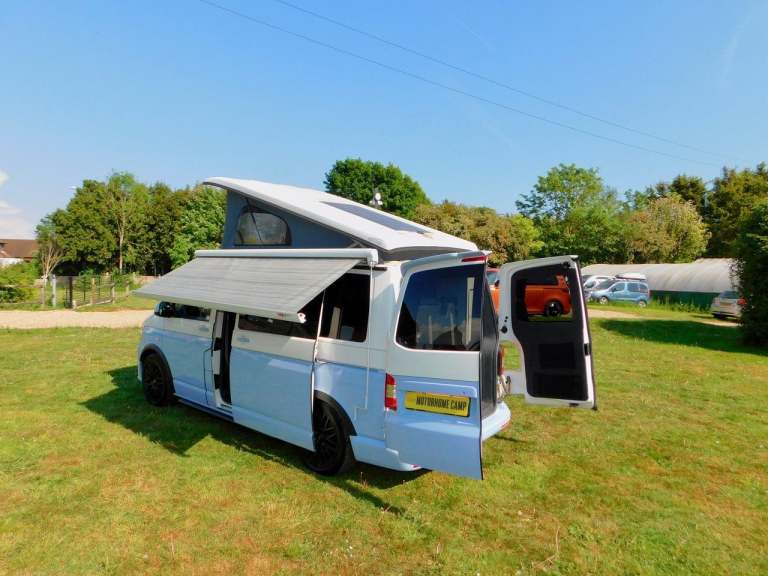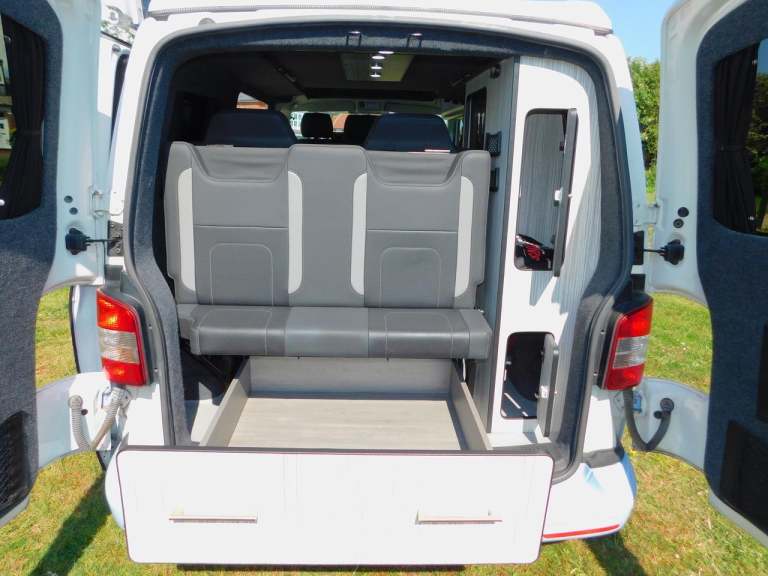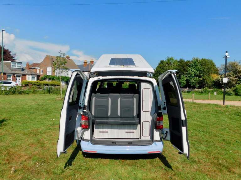 Highly Sought After ULTIMATE Campers Bespoke Conversion Short Wheelbase Model finished in Two Tone Bright Blue and White paintwork with Twin Rear Doors, Roof Mounted Solar Panel and Handy Large Slide out Rear Storage Drawer. Full Service History and a New Cambelt has recently been fitted.