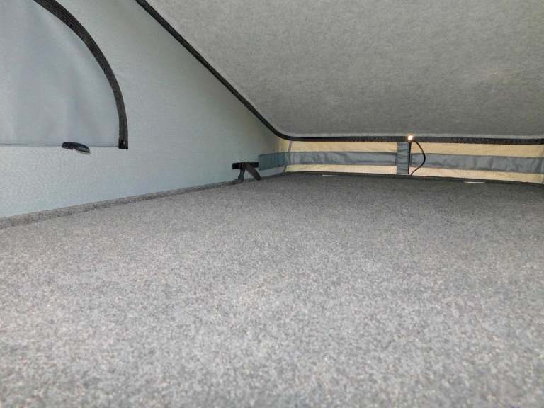 We have the Rock n Roll Double Bed downstairs with its 2 x 3 point Seat Belts and the Upper Double Bed. The Pop Top is really Easy to Put Up and Down.