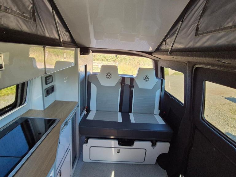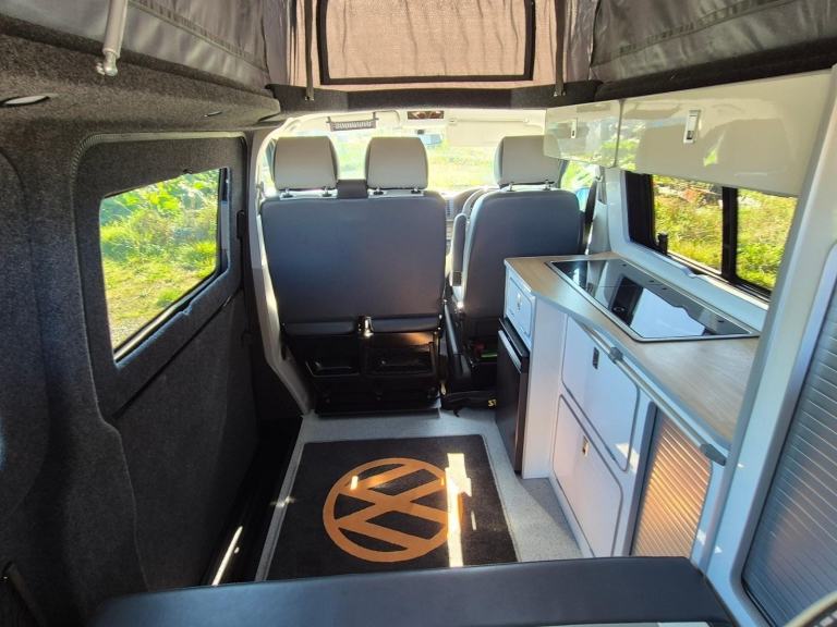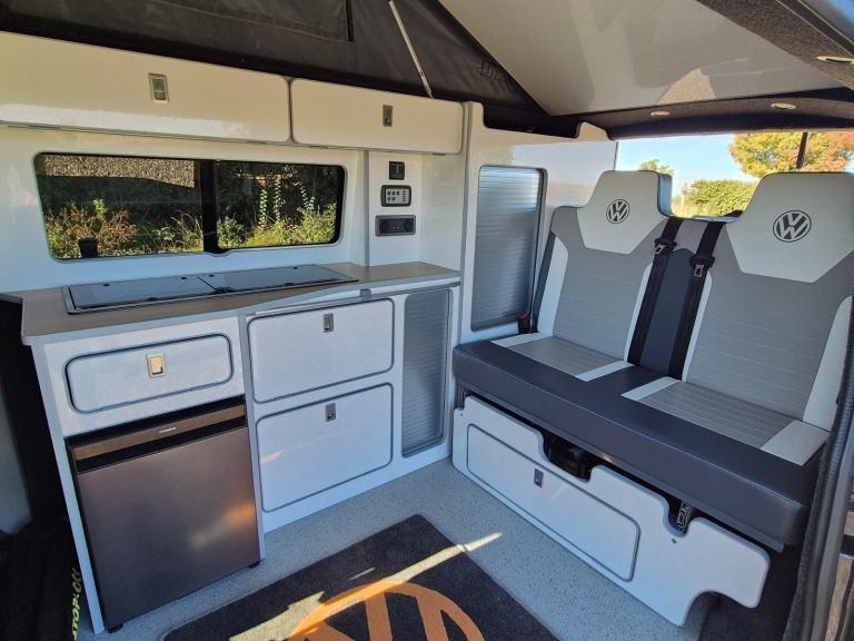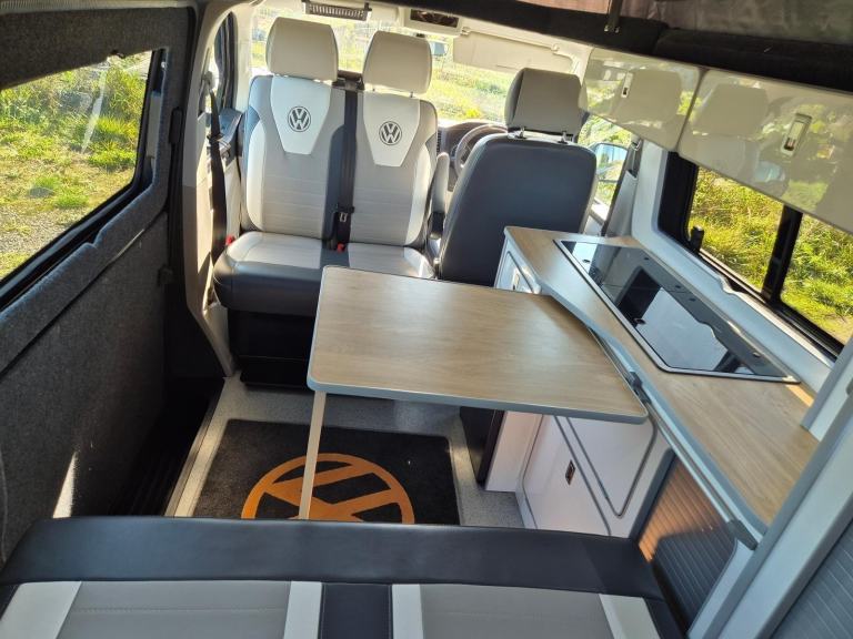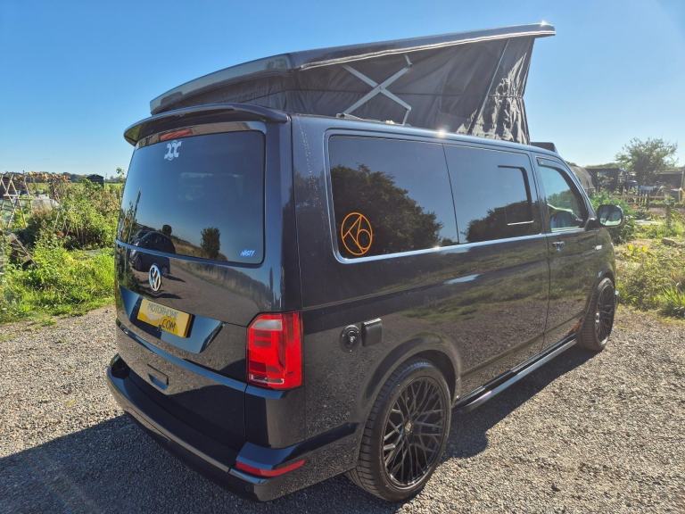 Motorhome Depot is delighted to present this Stunning 2019, 4 Berth, VW T28, 2.0L, 140 BHP, DSG Automatic, Custom Designs Campervan conversion with 5 seatbelts and 85542 miles on the clock. The attention to detail gives this camper a luxurious and modern feel that is perfect for all types of traveller. The seats are finished in a sumptuous stitched grey and white leather and the interior is also white and grey with contrasting worktop .Utilities include a Dometic double-ring gas hob and chrome sink combination, on board cold water, fridge with freezer compartment, and plenty of storage cupboards. The habitation space has plenty of room for a family to enjoy the living/dining area and has ambient lighting at the touch of a button. The double passenger seat swivels into the living space for two people to sit comfortably opposite the rear Rock ‘N’ Roll seats. The foldaway dining table makes this a comfortable and relaxing area to socialise and dine. At night, the Rock ‘N’ Roll seat very easily converts into a large and very comfortable double bed, whilst the Pop-Top roof allows for plenty of headroom for the daytime and converts to a double sleeping area at night to complete the 4 berths. The cab area comes complete with cab air con, DAB entertainment system, Sat nav, bluetooth connectivity and cruise controlExternally this camper has plenty of appeal in metallic blue with striking orange detail, black wolf race venom alloys and lowered suspension.This stunning campervan is perfect for couples and families alike, with its versatility of being an all-round, everyday vehicle as well as an outstanding travelling Camper, it is ideal for all types of adventurers.Please contact for some additional pictures and walk round videoViewing is available at IP5