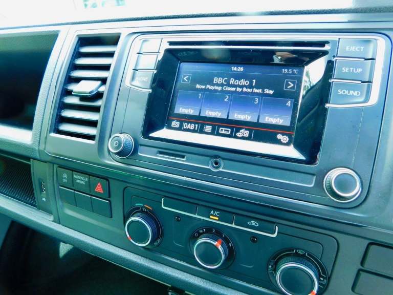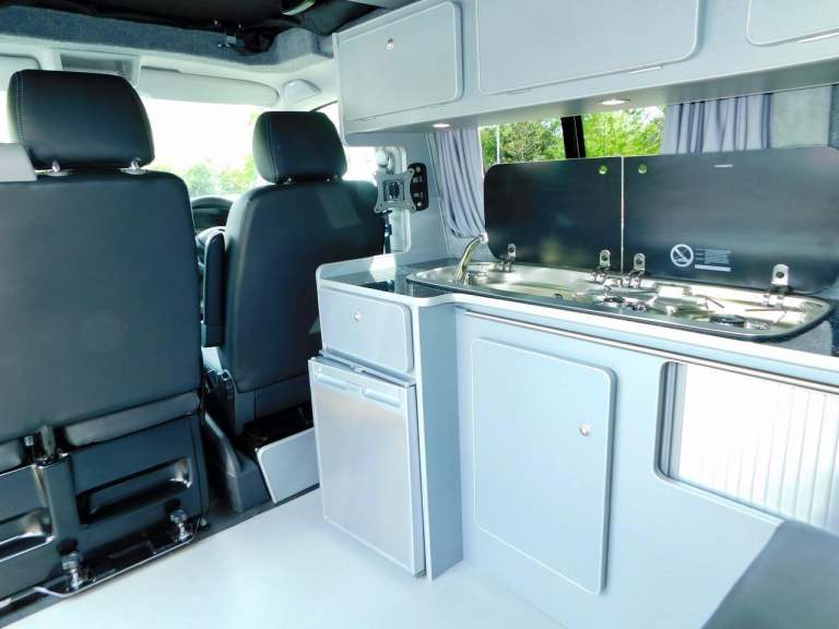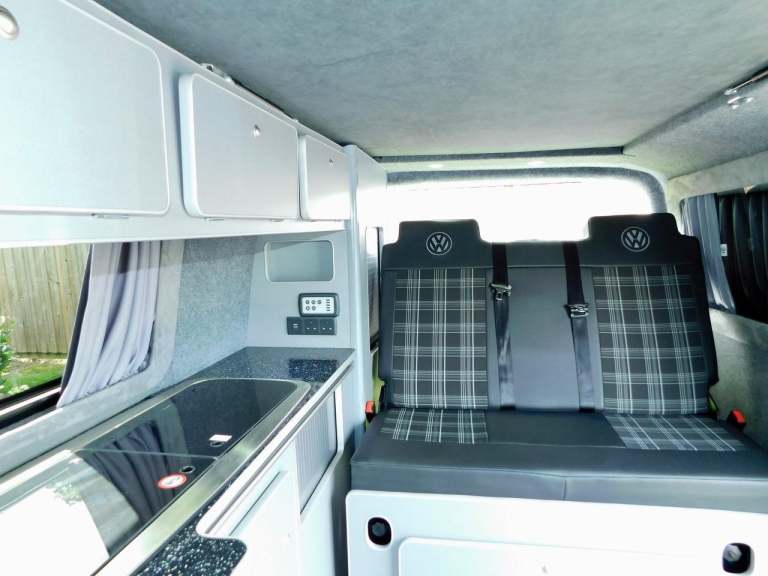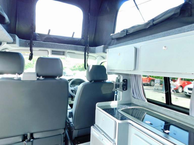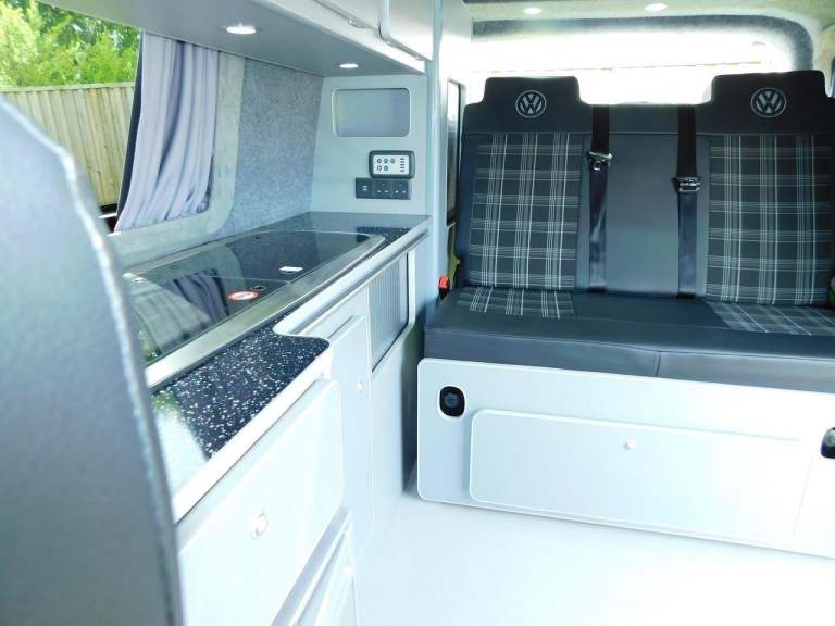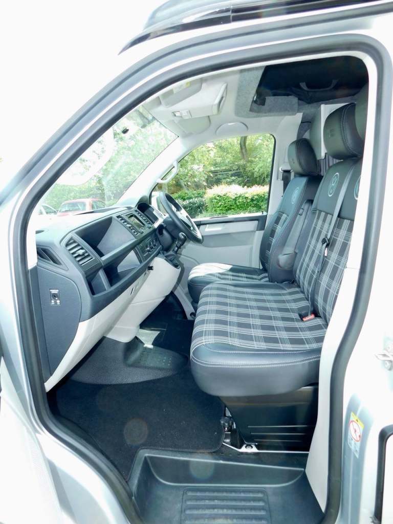The Cabin Has AIR CONDITIONING, Cruise Control, High quality VW DAB Radio with CD with Bluetooth Hand Free Phone Operation, Electric Windows and Door Mirrors plus Central Locking etc. We also have factory fitted VW Park Pilot Reversing Sensors with both Visual and Audible guidance. The Front twin cab seat Swivels to become part of the Lounge and Dining area. We have a removable folding dining table that attaches to a rail on the edge of the Kitchen.