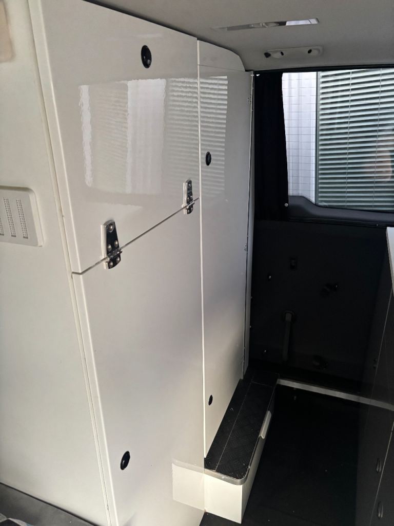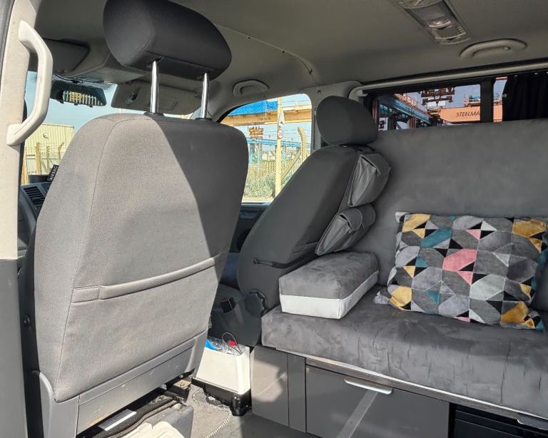 We have fitted it out with the flexibility to have 2 single beds, plus 2 belted seats which attach to 4 runners in the back