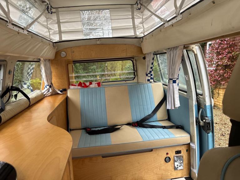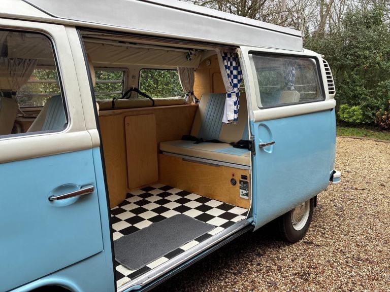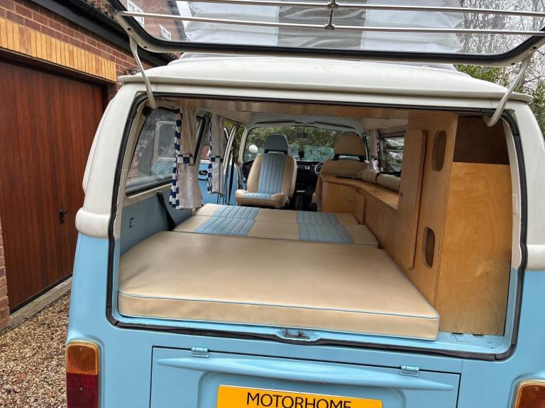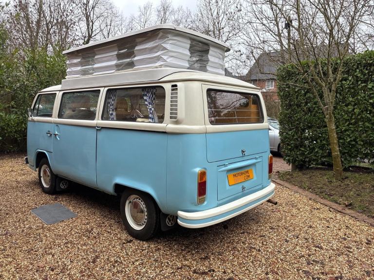 MOTORHOME DEPOT RICHMOND-UPON-THAMES are extremely proud to be able to present this classic almost 52 year old 1974 VW T2 Bay Window CampervanPlease Note:- Vehicle located Bracknell, BerkshireNew engine and power steering fitted in 2015/90,800miles - approx 8,000 miles driven on new engine - Light blue paintwork with coordinating pale blue & cream upholstery - Passenger swivel seat - Fold over single gas hob fed from Camping Gaz bottle (included) - water container for pumped cold water to sink - 240v sockets - 12v sockets - LED lighting - mains electric lead - leisure battery - Rock & Roll bed (6ft 3in x 3ft 11in) - 2 x roll out suspended hammocks (6ft 5in long) - side window curtains - cab window cover - Pop-Top roof fitted 2021 - front roof rack included (not fitted) - Outhaus awning also included - camper has been stored/garaged by current & previous owner - no expense spared with regards to servicing and general care of campervan - lots of organised paperwork to prove including original handbook - a few minor age related marks to be expected of a vehicle of this age - VW T2 BAY WINDOW 50+ YEARS OLD!! !!! THIS IS A MUST SEE IF YOU ARE LOOKING FOR A T2 BAY !!!Viewing by strict appointment only - please call for further details or to arrange a viewing31 day insurance cover included courtesy of Motorhome Depot & Finance Options Available