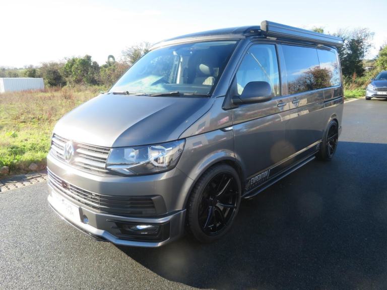 Motorhome Depot North Wales Present a very nice 2019 VW T28 Highline Expedition Camper king conversion, Based on the High Line VW Spec with real tailgate this camper has covered just 37,000 miles with a MOT unit 2/26 and serviced at 36,300 miles including recent tyres.This Expedition conversion includes - 20” Black Alloys with Recent Tyres style meets performance and Body Kit inc side bars and front and rear spolier Monte Carlo Conversion – practical luxury throughout Grey Gloss Cabinets & Worktop – clean, contemporary interior finish 50L Fridge Freezer – perfect for road trips and weekends awayWebasto Diesel Heater – reliable warmth year-round 2-Seater rear seat with 2 x seat belts that folds easily to make your Bed – ideal for family use Upgraded Upholstery – Black Suede for a premium feel Pop-Top Roof with Elevating Bed – 4 berth, 5 seatsFinished it the popular Metallic grey.Please feel free to contact Aled by Calling 01248 614028 or by clicking "ENQUIRE NOW" for further information and a comprehensive image file.Viewings are by appointment only, please call me today to arrange yours!As part of Motorhome Depot, we offer finance, part exchange and warranty options and one-month FREE drive away insurance. All Vehicles have been HPI Checked, and report is available upon request. Please note, this vehicle is not a brokerage unit and as such means that it is compliant with the Consumer Rights Act 2015.