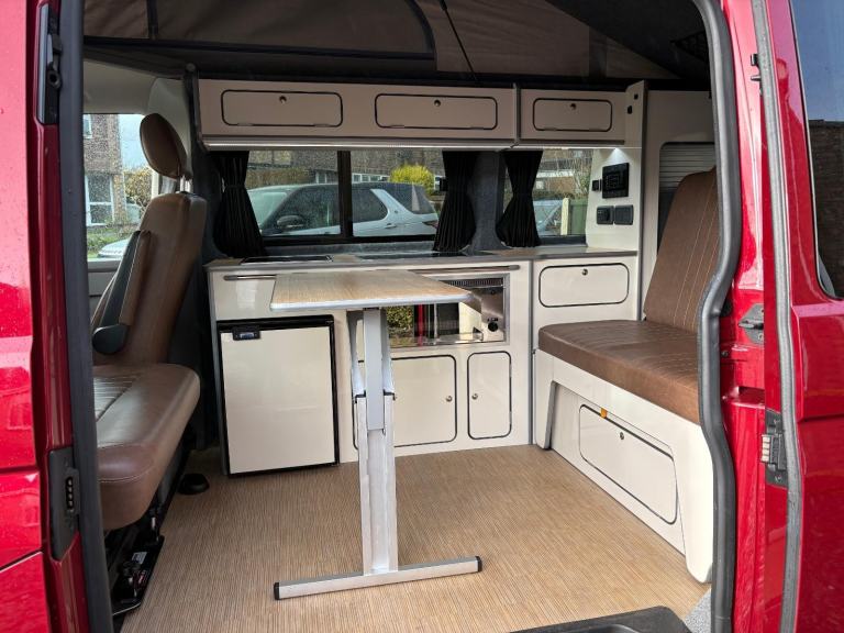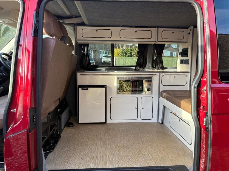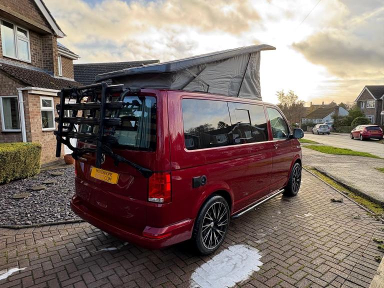 Motorhome Depot East Leicester are delighted to bring to market this eye catching Volkswagen T28 Highline. This 2022 model has a 1968cc litre Euro 6 engine making it Ulez compliant, 5 Belts and 4 Berths. At only 5.05m long, it would make a perfect daily vehicle as well as a campervan. This model has been carefully and tastefully converted by Cambridgeshire Campervans. The cab benefits from Air Conditioning, 3 front travel seats, 12v Plug socket, Media unit, Cruise control and cup holders.The Habitation area features a well equipped Camping experience featuring the kitchen area which includes: 2 ring gas hob, gas grill, 12v fridge, sink with cold running water, plenty of cupboard storage, USB and 230v sockets. The elevated roof provides sleeping for 2 with a comfortable mattress included. Rear travel seats convert into a double rock and roll bed with underneath storage. Front double cab seats swivel on the base to allow 4/5 to dine or lounge.Extras included with this vehicle are: 4 arm bike rack, solar panel and a drive away hexagonal awning is available by separate negotiation.For further photos and video, please click the enquire button where i can forward you a catalogue of photos and walkaround video.Buyers are welcome from all over the UK, a collection service is available from local train/bus stations or local airport.Viewing is highly advised.