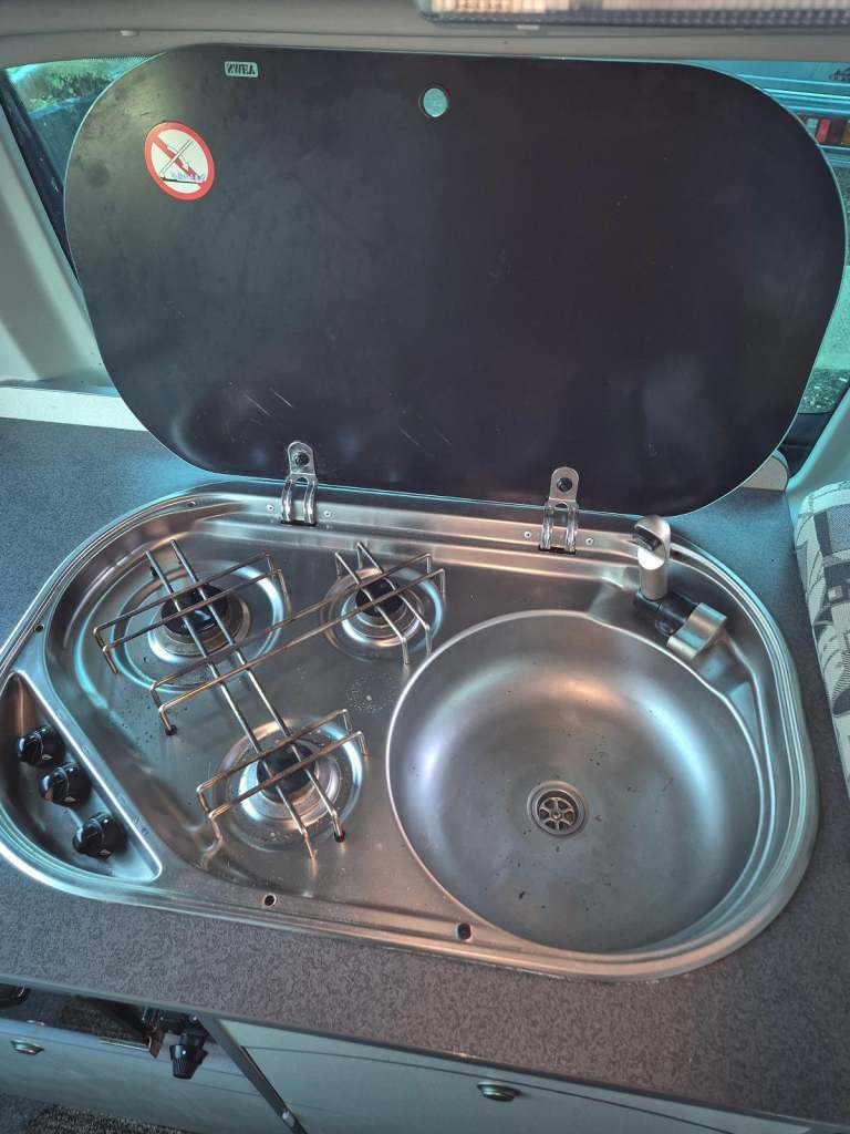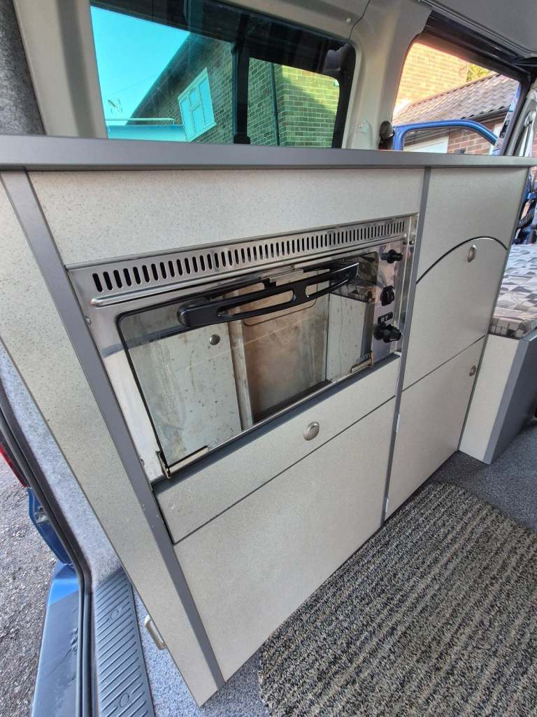Motorhome depot are pleased to present this Bilbo’s Nexa VW Transporter camper van for sale, a Transporter T30SE, 140BHP chassis with a DSG auto gearbox. Open the sliding door and there are 2 single seats that also form single beds which allows a convenient walkway through the van to the practical end kitchen. This has a 3-burner gas hob, grill ,sink, fridge/freezer and plenty of cupboards for storage. The front seats can swivel to face a free standing dining table and there are plenty of windows which allow good light into the camper. The central heating system is provided by a Webasto diesel heater . There is plenty of under seat storage available plus extra storage units at the rear quarter of the camper. Within the pop up roof there is an additional double bed and this can be folded up when not in use to allow more headroom. There are windows in the roof to allow more light into this area with black out screens. The cab has a Bluetooth phone connection, air conditioning, electric windows, mirrors, central locking and a hard wired Tom Tom Sat nav. The tailgate door is fitted with a bike rack and once opened you also have access to the Kitchen and the gas bottle. Outside you have a rail that can be used to fit an awning or a sun canopy . The van has 1 leisure battery, 2 sets of keys and is registered as a Motor caravan with an MOT until April 2025 this lovely well equipped van is ready to head off on your next adventure.Viewing is available at IP12