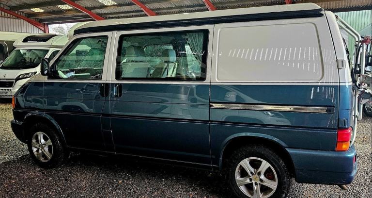 Motorhome Depot Dorchester are marketing this pretty little 2003 2.4L T4 pop top camper.Priced at £11999Warranty availablePart exchange welcomeVehicle location: Blandford Dorset2003T42800kgs weight2.4L V5 engine Manual gearboxPrimary features:Pop top with roof bed12v fridgeGas hob and sinkCurtainsTable with leg1 x Swivel seat (passenger)6 x 12v lightsRock and roll bedWhat's good about this van?Recent resprayUndersealed (pictures provided on additional information)Recent tyre upgrade to cross climate all roundPop top canvas in excellent conditionVery clean inside and outBrand new MOT upon purchaseThis really does need to be viewed to be fully appreciated.For the full video tour and additional 40+ photos contact Mike Marks your Broker.