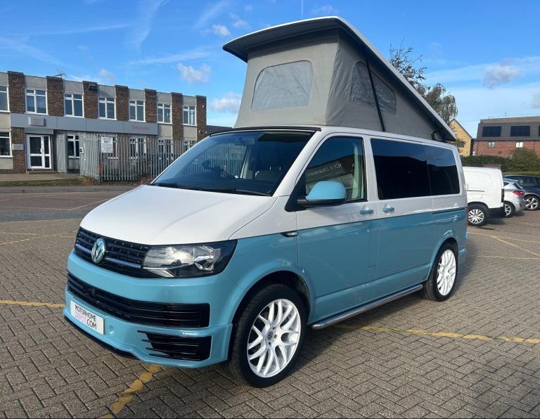 - LOVELY TWO-TONE CAMPER CONVERSION- PROFESSIONALLY CONVERTED BY NEEDINGWORTH CAMPER CONVERSIONS IN ST IVES- LOW MILEAGE - ULEZ COMPLIANT - EURO 6- RECENT HABITATION CHECK- 4 BERTH WITH 5 SEAT BELTS - POP TOP - ELECTRIC HOOK-UP- SOLAR PANEL- WEBASTO DEISEL HEATER- DOUBLE FRONT SEAT- ROCK AND ROLL BED- TOW BAR- AVAILABLE TO VIEW NR LAKESIDE, ESSEXThis is a lovely VW T28 that has been professionally converted by Needingworth Campers based in St Ives, Cambridgeshire. It comes packed with extras including the Webasto Heater and Solar Panel. The campervan has v low mileage and has a Euro 6 engine making it ULEZ compliant and perfect for traveling round the UK, including cities and ideal if you want to spend time abroad. It is presented in excellent condition inside and out.The base vehicle is the VW T28 S-Line TDI and has an economical 2 litre engine with 5 speed manual gearbox. It comes with cab air conditioning, radio, bluetooth connection and reversing sensors, making it so easy to drive.The camper comes with a rotating double front seat and 5 travelling belts in total. It has all the usual features of a well equipped camper including rock and roll bed, 12v/240v Fridge with Ice Box, gas hob with 2 burners, cold water sink and LED lighting. The VW campers are great for sleeping in with the rock and roll bed providing one double and with another double in the Pop Top roof. The camper comes with an underslung water tank and also has electric hook up and a fitted tow bar.In summary this is a lovely camper that looks fantastic and is ready to go.To see an extensive file of photos and walk around video please send in an enquiry, I would be very happy to help with any questions or arranging a viewing.