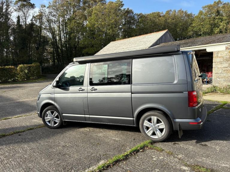 Motorhome Depot Cornwall are proud to present this 2017 VW Transporter T6 Highline TDI AUTOMATIC van conversion that is a 2 berth 5 belt camper. The conversion was professional done to a high standard by the well-respected Chilli Jam Vans, comes with FULL SERVICE HISTORY, the rare 201BHP and is Euro 6 compliant. This vehicle has only had 1 owner from new, has a GOOD MOT RECORD and is powered by a 2.0 Litre TDI Diesel Engine with the rare AUTO Transmission. A perfect choice if you are also looking for something that can also be used as a leisure vehicle. The Double bed in the van is one that is made with ease and offers a larger bed than most VW conversions. Features include - Cab Air Con, Central Locking, Heated Front Seats, Thule Wind Out Canopy, Single Passenger Swivel Seat, USB ports in the Rear, 240 Port in the Rear, Hook Up Point, Hook Up Cable, Silverscreens for the Front Windows, Rear Sensors, 2 Sets of Keys, Reading Lights, Fridge with Storage Draw, Electric Windows and Mirrors, Several Slim Lockers for additional storage.The rear seat is also on runners to move to your comfort when travelling and you can travel an extra 3 people in this area. Location – Helston/Cornwall.HPI ClearLength is 4.9metres and is a SWB vehicle.MOT Valid until November 2026.Last Service 15/01/2025 and years serviced include - 19,19,20,21,22,23,24 and 2025.To see a more extensive file of photographs, walk around video or ask any questions and book an appointment for viewing please call or email Stefan and Alex on [Phone number removed]or email [Email address removed. Click Email button to contact us.]