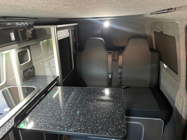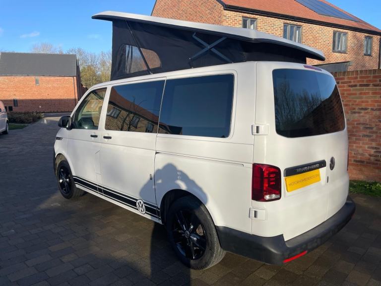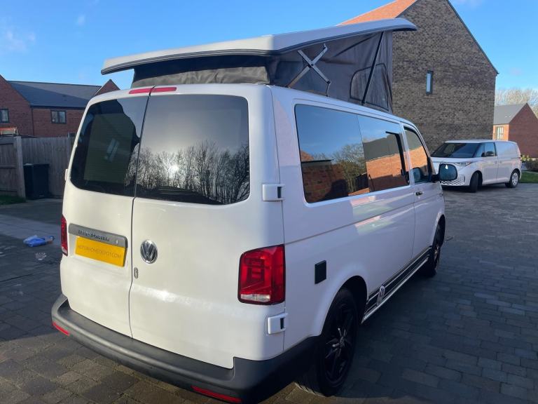 For Sale: VW T6.1 SWB Campervan , 66,000 miles – Fresh Conversion, Never Used! Discover the freedom of the open road with this stunning VW T6.1 Short Wheelbase Campervan, newly converted and completely unused. Finished in crisp White with sleek black decals and matching black alloy wheels, it strikes the perfect balance of style and adventure-ready practicality. Designed for road trips, weekend escapes, festivals, and family adventures, this campervan is packed with premium features, including: Cab air conditioning for year-round comfort Apple CarPlay / Android Auto head unit for seamless connectivity Slide-and-swivel captain’s passenger seat for effortless use and panoramic interior views UK-built Austops pop-top roof, providing extra headroom and sleeping space Comfortable rock-and-roll bed, allowing the van to sleep up to four people Blackout interior blinds for privacy and restful nights Built for both on- and off-grid living, the van can run on the 12V leisure battery or 230V electric hook-up. It comes fully equipped with: Compressor fridge/freezer Gas hob Sink This campervan truly offers a superb blend of comfort, functionality, and versatility. It’s ready to hit the road immediately and start creating unforgettable memories. For more details, to receive an extensive photo file, or to arrange a viewing, call Alistair on [Phone number removed]. Located near Northampton, viewings are available by appointment only.
