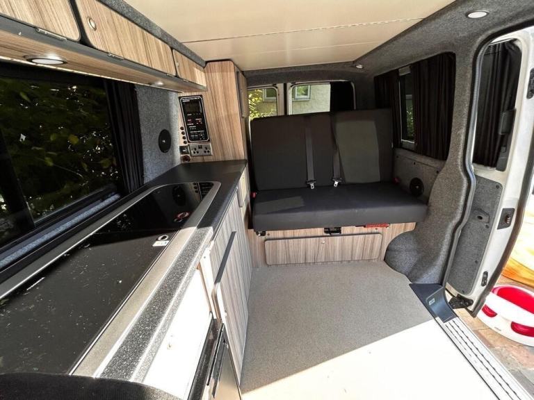Hit the Road in Style – VW Transporter 4-Berth Camper by Campervan FactoryReady for your next adventure? This beautifully converted VW Transporter, crafted by the renowned Campervan Factory, is your ticket to freedom. With a sleek, professional finish and packed with practical features, this 4-berth camper combines iconic VW reliability with top-tier craftsmanship. Whether it’s weekends away or extended road trips, this van is fully equipped to take you there in comfort and style.Fantastic, highly professional conversion carried out by the highly regarded "Campervan Factory", including comprehensive insulation, and carpetingSeats 5 in comfort (3 in front, 2 in rear)Swiveling Dual passenger seat creating lounge areaSmart bed/seat Evo2 tested and certified so that it meets the latest EU regulation, for seat belt : EC DIRECTIVE 76/115/EEC FOR M1 LOADING, and carrying passengersAccommodation for 4, 2 in 3/4 width bed, 2 in pop top area using 3 roof boardsFiamma F45S wind out awningWebasto Diesel heaterLED lighting throughout the habitation areaDometic CRX 50 3 way fridgeSMEV combination sink2 burner hobComprehensive professionally fitted electrical installation, including leisure battery, split charging system, and 240v systemBlack limo tint windowsHuge amount of storage space in lockers, cabinets, under bed and dual passenger seatEuro 6 (ULEZ compliant)DABElectric windows and mirrorsAlloys wheelsAir conditioningBluetoothRear Parking sensorsRear barn doorsMOT until 9th Sept 2026Timing Belt and water pump replaced at 95327 in September 2024 We are proud to offer Complimentary 31 Day Free Driveaway Insurance on this vehicle.Vehicle located in Stroud, (GL5 postcode area), viewing by easily arranged appointment!Part Exchange, Finance and Warranty Options Available. For many more photographs - Please enquire above, or call Ashley on [Phone number removed]or 01453 709469 - I'll be very pleased to help!