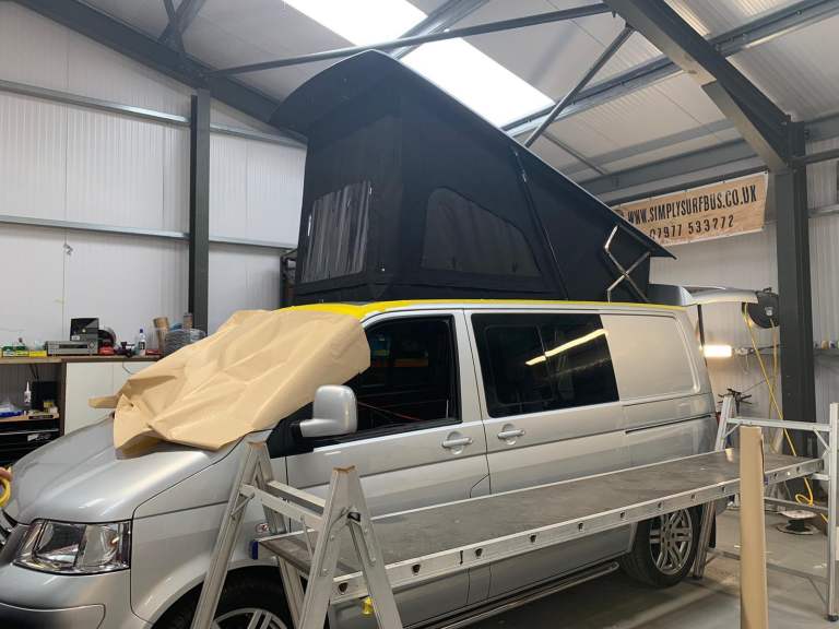 Hi-lo (horizon) low profile elevating roof fitted by simply surfbus. 12/240 electrics. Fully carpeted and lined. Full width SMARTBED EVO R bed on rails fitted by wise Motorhomes, with real leather upholstery to match front seats. Front rib swivel seats. All professionally installed. No cooking facilities as I would never cook inside of the van. Bed and roof never used. Full sportline spec which includes air conditioning, and leather interior, . Been a great van with no problems, any inspections welcome.