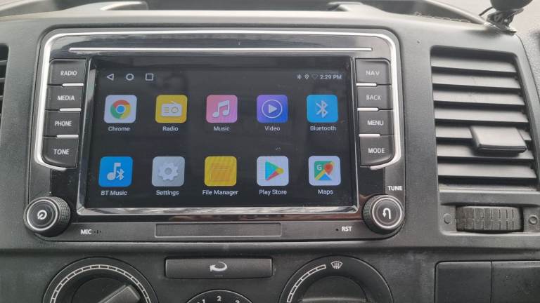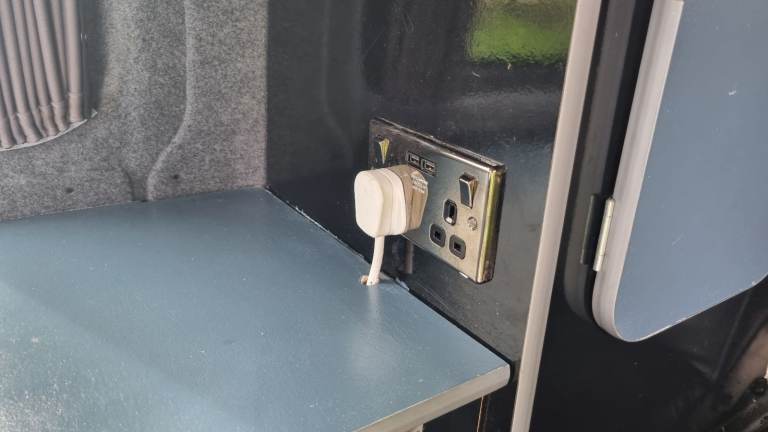 It has electric hook up; van levelling blocks; touchscreen USB bluetooth smart radio with reverse camera.