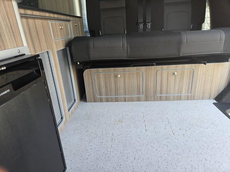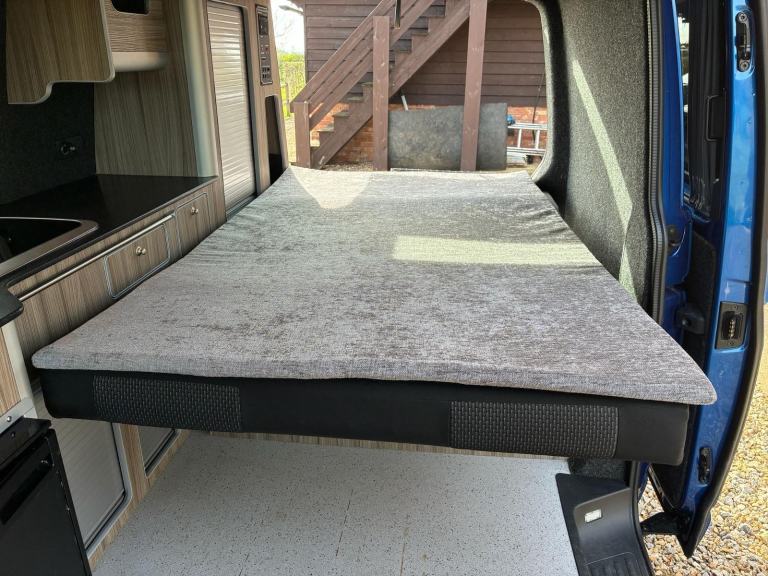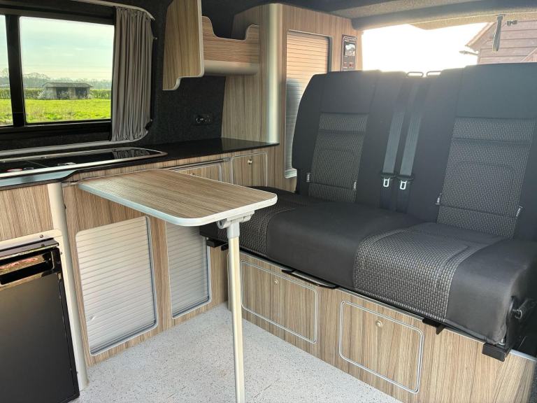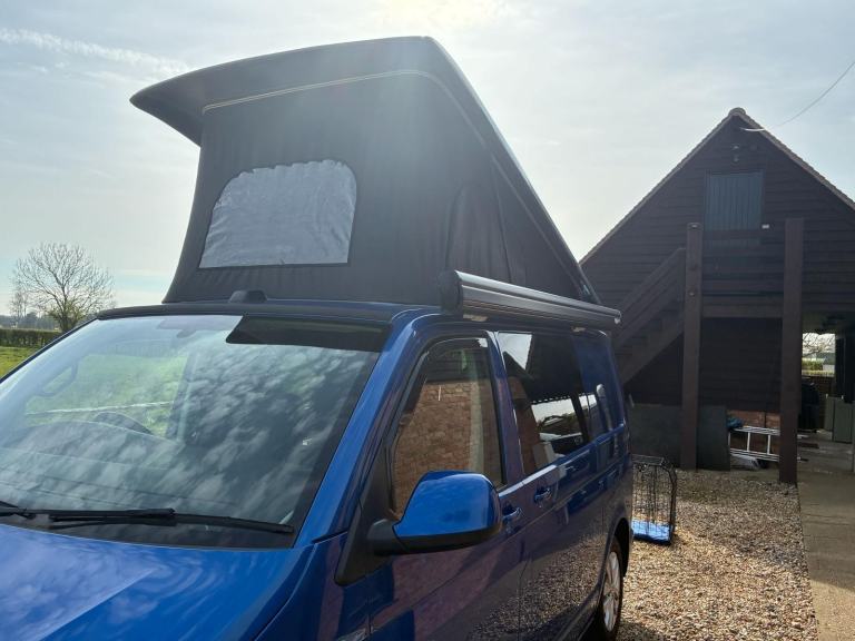 PLEASE NOTE THIS VEHICLE IS LOCATED IN READING BERKSHIREMOTORHOME DEPOT RICHMOND-UPON-THAMES are pleased to present this beautiful eye-catching blue VW Transporter T28 Highline TDI | 2022 | Webbs Conversion | just 9,019 miles on the clock | 110HP | ULEZ FREE | 2 Owners | 4 Berth | Pop-Top | 4 seatbelts | Fiamma F45S wind-out canopy | 2 x swivel seats | sought after tailgate up & over door | Rib bed with topper | black-out curtains | light/mid-wood grained interior with black work surface over | light grey speckled flooring | LED mood lights (white & blue) | 2 x gas ring hob | sink with cold water tap | removable dining table | roller shutter door storage cupboards | Dometic fridge with small freezer compartment | Diesel heater | 240v | 12v | ***Removable bespoke pet carrying cage made by Barjo Cages & Guards with bedding - perfect for dogs or other pets alike***Viewing by strict appointment only - please call for further details or to arrange a viewing31 day insurance cover included courtesy of Motorhome Depot (some restrictions may apply) & Finance Options Available