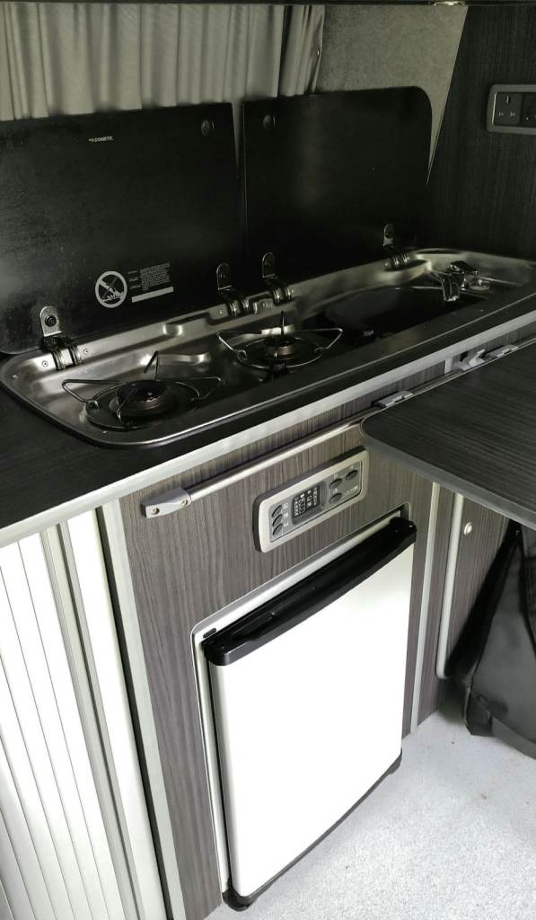 • Dometic gas stove, sink and fitted cupboards.