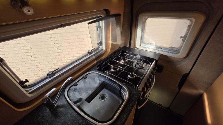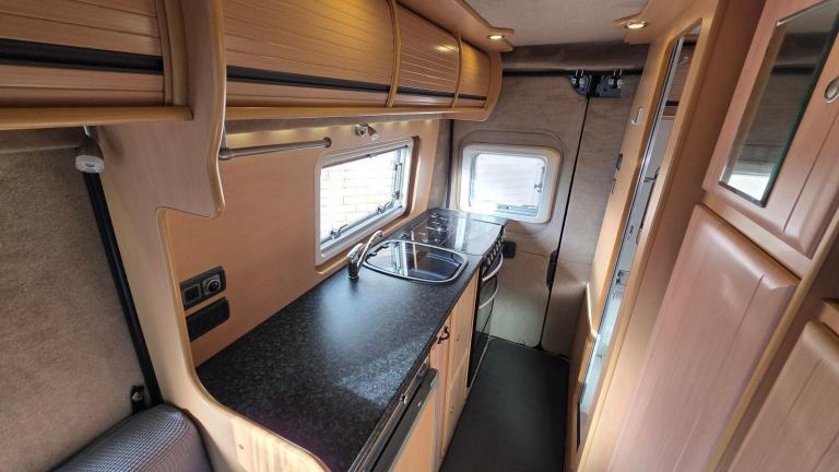 Central Heating; End Kitchen; Cooker; Back Seat Safety Belts; 12V Lighting; V5 Registration Document; Blinds; Grill; Anti-Lock Brakes (ABS); Awning; Mains Hookup; Double Glazing; Oven; 240V Lighting; Sink; Driver Airbag; Hand Washbasin