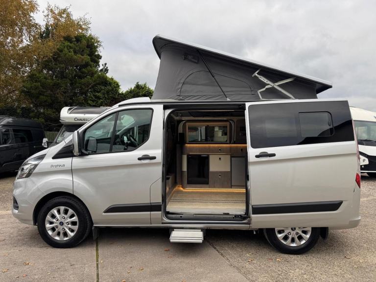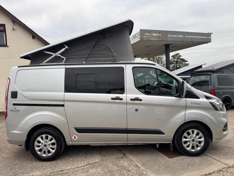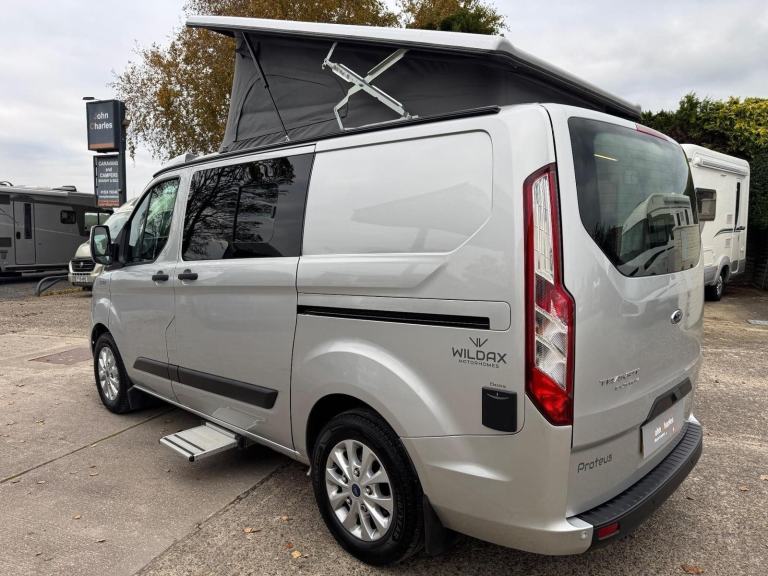 This 2021 WildAx Proteus Automatic is an exceptional example of a premium 4-berth campervan, built on the Ford Transit Custom 170BHP Automatic. With only 8,000 miles, this van combines WildAxs renowned craftsmanship with Fords smooth and powerful driving experience perfect for families or couples looking for a versatile, high-quality camper.