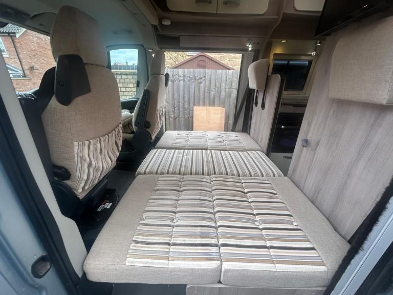 Motorhome Depot are pleased to present this Wildax Pulsar compact motorhome, At 5m long it makes it ideal for the small UK roads and gives you access to UK and European Cities and towns. it is ULEZ compliant. The fact it is 5m means it fits comfortably on most driveways. The cab is well equipped with cab air conditioning, cruise control, reversing camera, radio and Sat Nav. As a Euro 6 it is also ULEZ and clean air compliant. The motorhome also comes with 4 travelling seat belts - ideal if you want to take a couple or guests or grandchildren for a day out. At the front you have a great space to sit and relax with the two Captains Chairs and two front facing singles seats. The Hi-TOP roof gives it a great feeling of space. There is a surprising amount of storage space, At the rear there is a well equipped kitchen including oven, grill, hob with gas burners, sink, fridge freezer. The washroom has a flush cassette toilet, sink and shower. Heating and hot water is provided by the simple to use Truma system. Externally there are lots of extras including the wind-out awning, underslung gas tank, solar panel, leisure batterry, In summary, this is an absolutely fantastic compact motorhome that is ready to go. This can be viewed in Lincolnshire by appointment only/