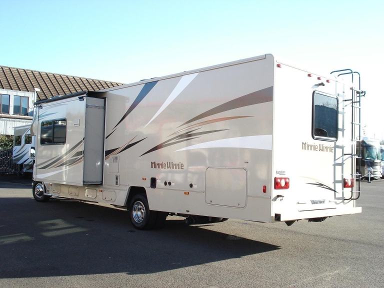 Winnebago 31H Minnie Winnie Bunkhouse with the following spec. Two huge slide outs with slide toppers. Ford E450 triton Petrol with Long range LPG conversion. 6sp. Auto torque shift . Various outside roto cast lockers plus rear through locker. Sleeps 8/9 with Rear East west Queen island bed in end bedroom. Ample storage cupboards and wardrobe space. X2 full size bunk beds. Good size shower room with W.C. and vanity wash basin. All laminated type flooring. Kitchen area with all fitted appliances. Bed settee and dinette Plus huge over cab bed. Seat belted throughout.Ice cold roof air conditioning. Thermosticly controlled central heating Fitted security safe. Front area 32”T.V Full 110/240/12v electrics with on board 4 KVA Onan generator. Reversing camera. Cold air cockpit air conditioningUK spec. Tow hitch. Elec Sun awning. Beach shower. One private USA and one private UK owner. All manuals and documentation history from new. Insurance approved alarm immobiliser. Fitted tracker. Perfect set up for familly long term living.