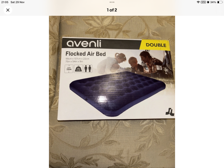 It's been used twice for camping and once as a spare bed for guests, very comfy with a blow up double bed. It is in perfect condition, ready to go.