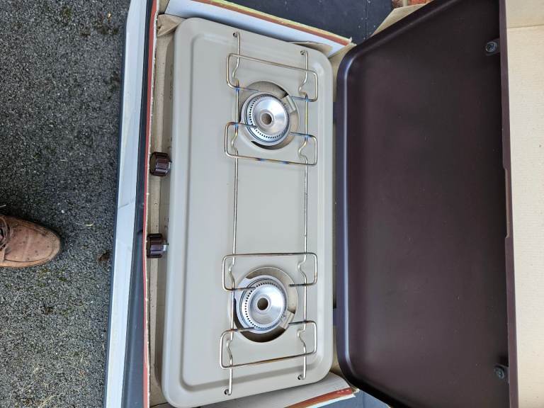 Kocher camping cooker 2 rings.Virtually BRAND new. Just switched on to make sure it works, no cooking done.