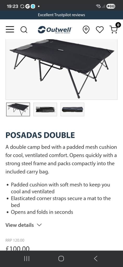 Posting for 18+ yearsOutwell posadas Folding Double camping bed with self inflating mattresses included..