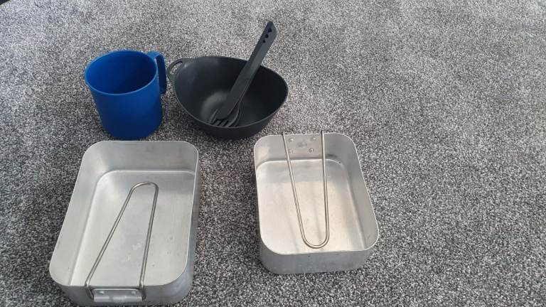 Get ready for your next camping adventure with this equipment bundle. The bundle includes a spacious Eurohike 65 litre rucksack, brand new compass (unopened), 1 litre water bottle (x 2), sleeping mat, eating tins (x 2), bowl, cup & cutlery set. All products are recommended as part of the Duke of Edinburgh scheme. Whether you're a seasoned camper or just getting started, this bundle has everything you need for a successful camping trip. Don't miss out on this great opportunity to gear up for your next outdoor adventure.
