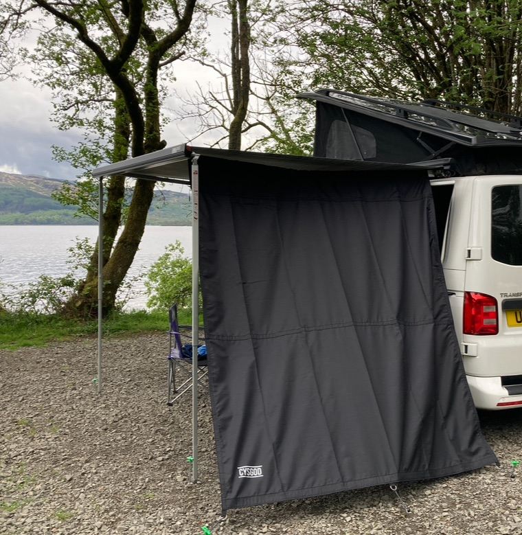 Used once, this Cysgod awning shade side panel is suitable for a 2.6m awning. We used it on a Fiamma awning. Great for shade / privacy on any campsite. Lightweight and easy to pack. Only selling due to van change. Buyer must collect.