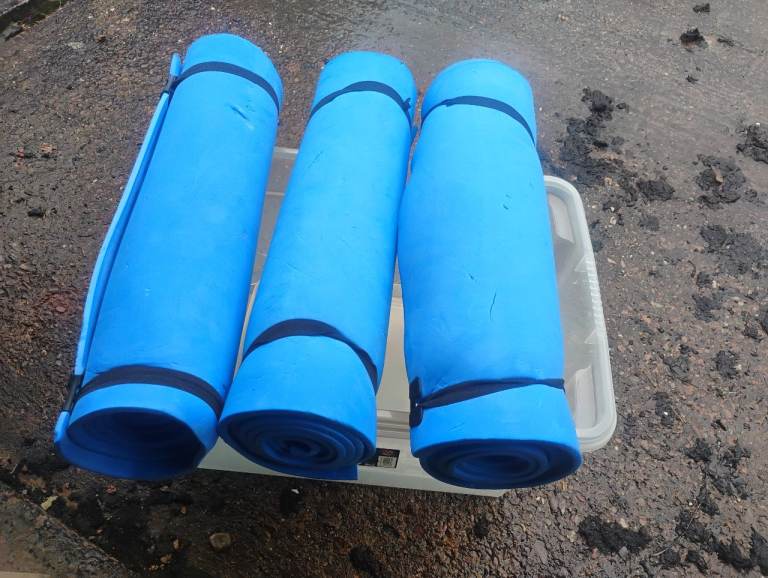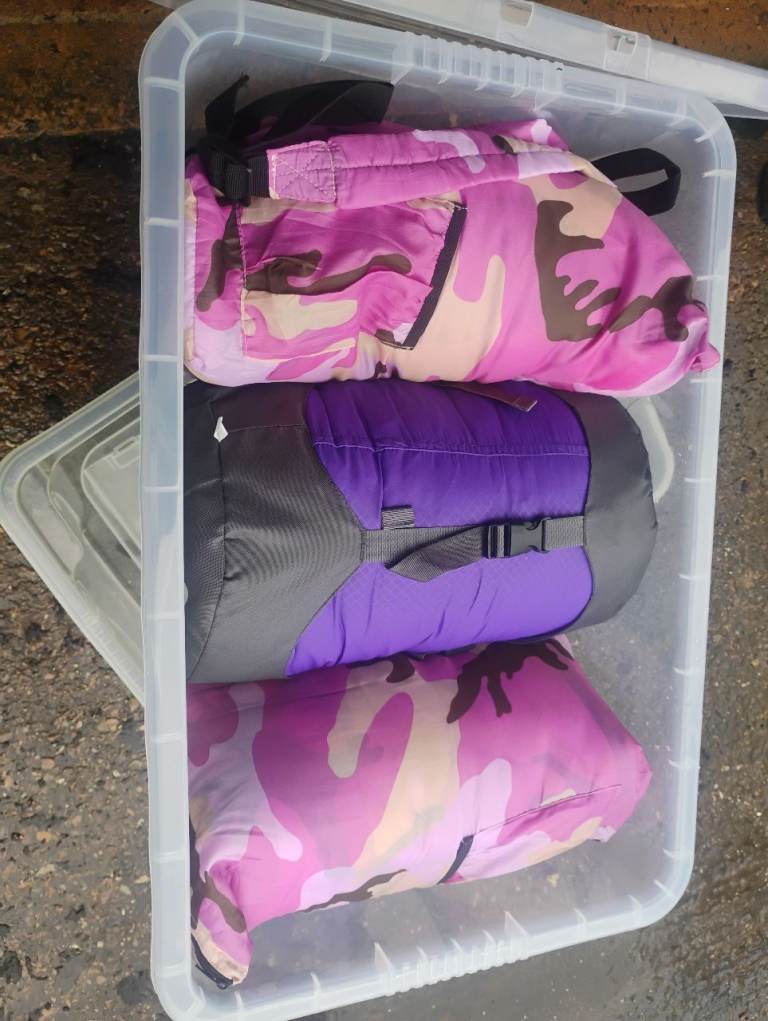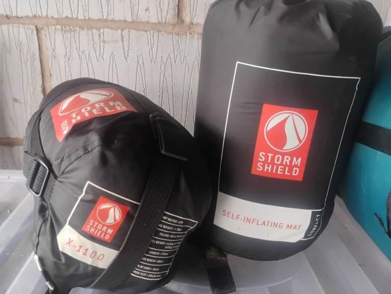 Includes: 4 man tent, 4 sleeping mats, 2 adults sleeping bags, 2 children's sleeping bags, 1 double sleeping bag, 15Ltr collapsible water carrier, roll up aluminium table, cook set (single burner stove + pans), toilet tent, 1 folding chair.