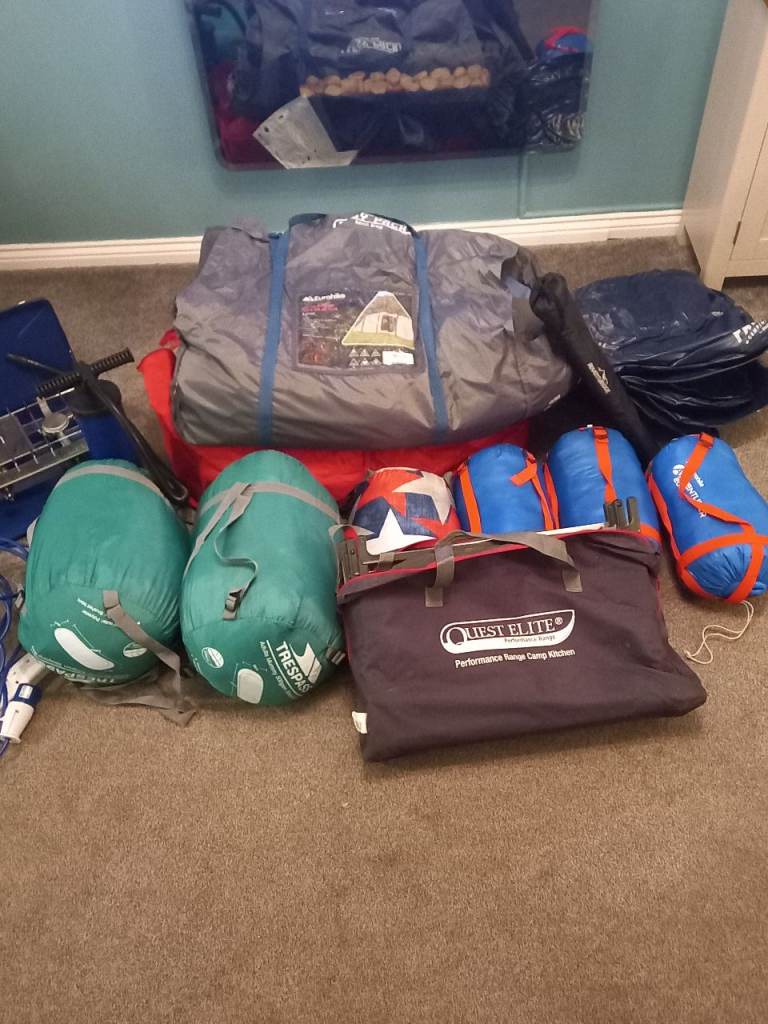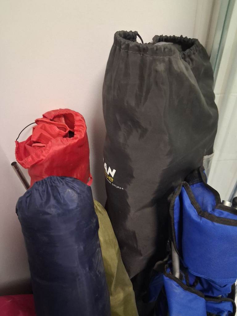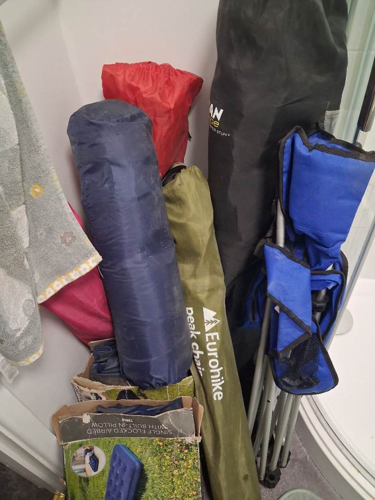 Sleeping bags, chairs, Porta potty, Toilet/changing tent. More bits to add.