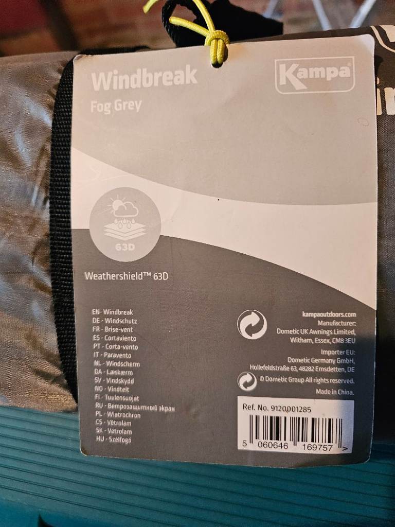 KAMPA STANDARD WINDBREAK GREY 500X140CM NEVER USED