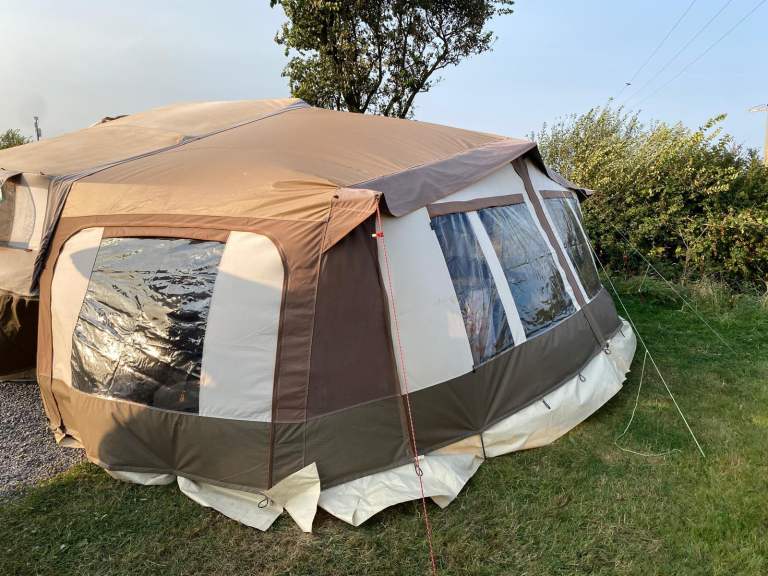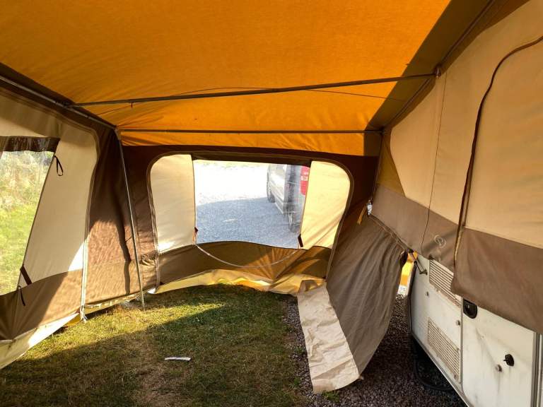 In good overall condition, comes with a full awning and skirting for around the outer beds.