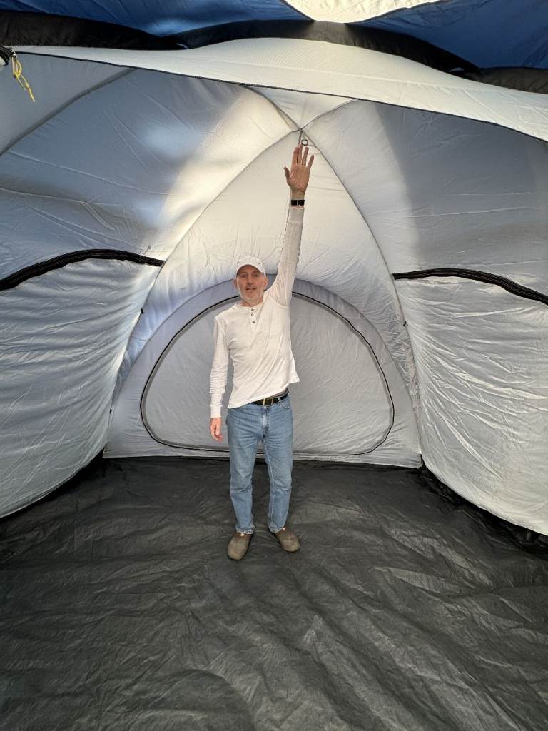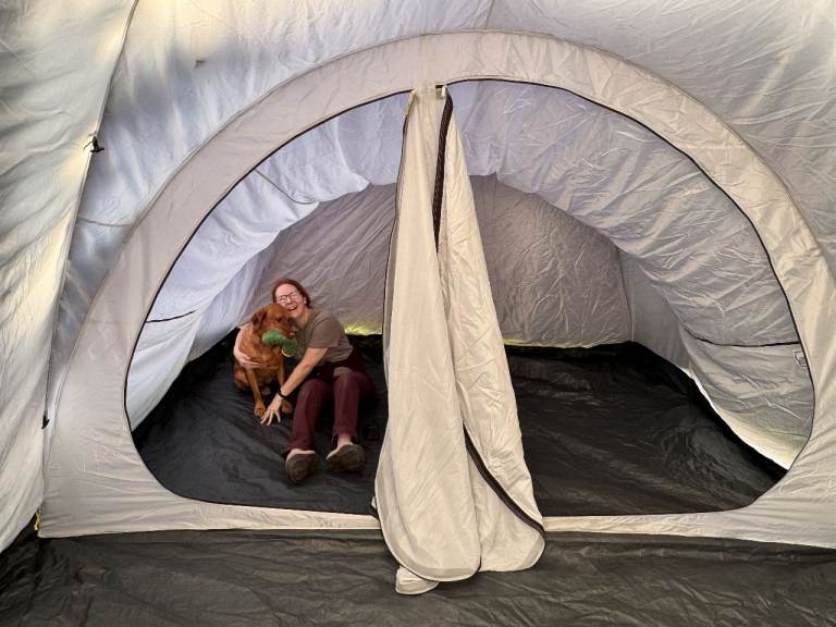 Has a large dividable bedroom which opens onto the central living area created by a huge dome. There is a large extended main entrance plus two further doors; this is ideal for weekend camping or longer breaks away.