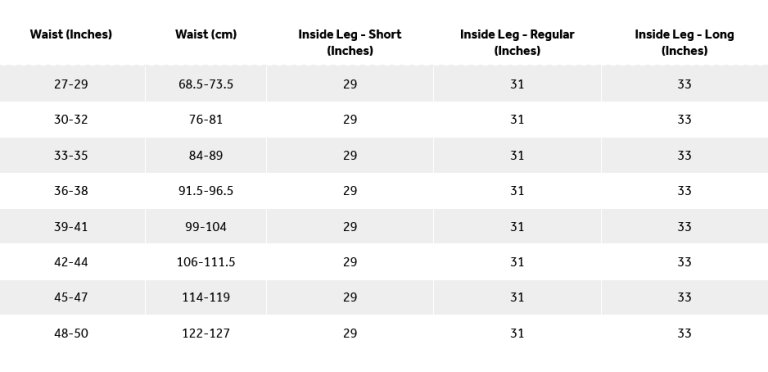 Inside leg measurement: 79cm