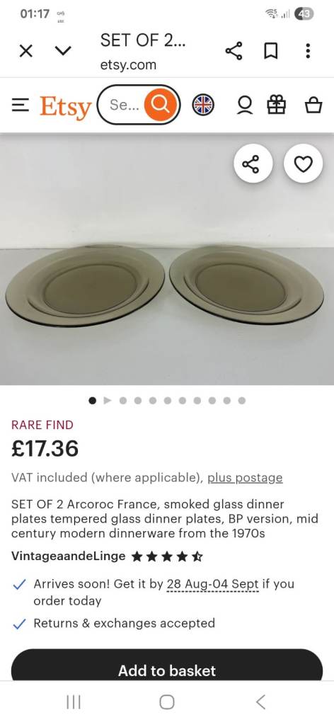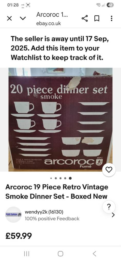 I am selling this RARE FIND vintage yet modern Arcoroc glass tea & dinner set with a smoky brown colour. You can use it in the microwave , oven, airfryer, and dishwasher safe. I have 6 mugs, dinner, side plates and bowls too
