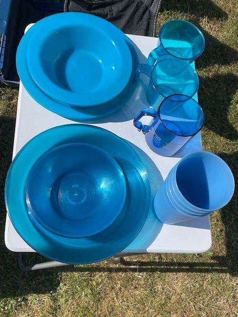 7 x blue plastic bowls