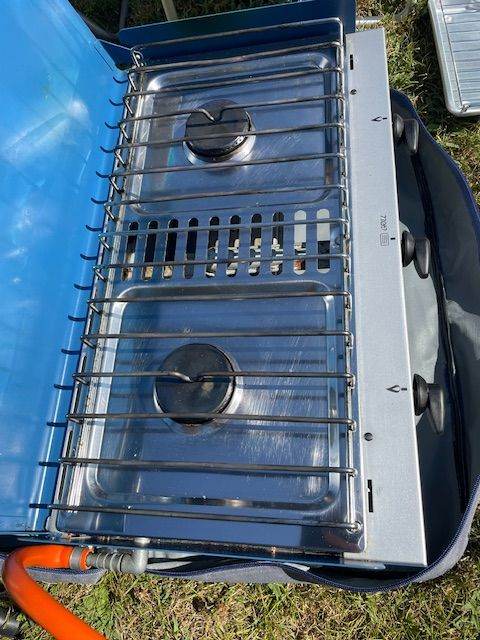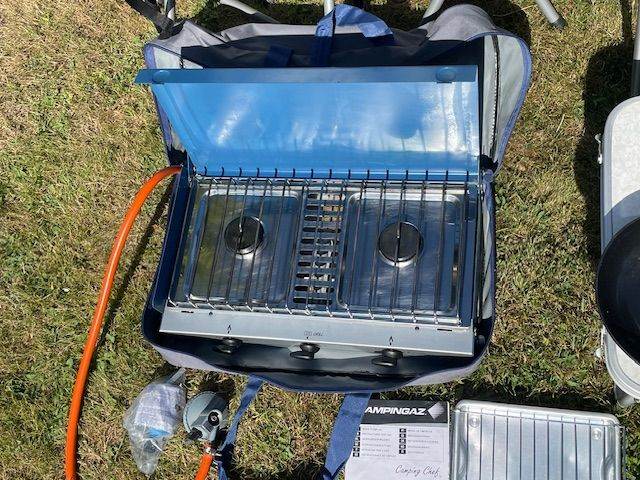 Campingaz chef stove with grill underneath. Comes in its own carrying case. 48cm x 22cm hob.