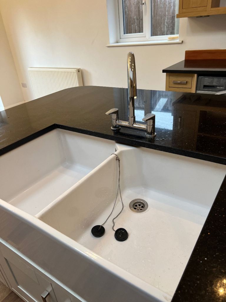 Belfast sink - double W86cm x D22cm x L54cm silver tap