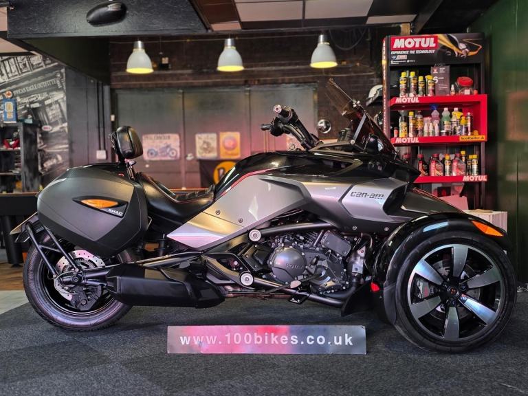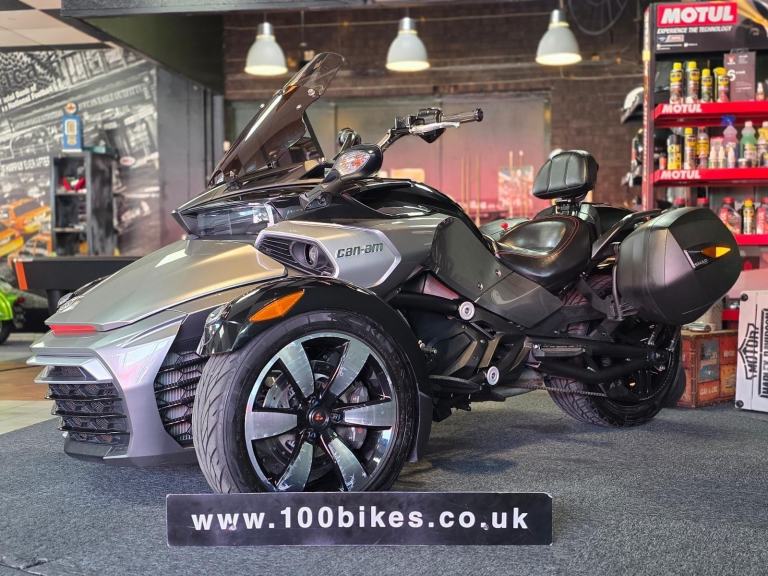 2016 Can-Am Spyder F3 6 Speed Trike in Silver Grey with 18,000 Mile's. Fantastic value now with Shad Panniers, Double Tint Vario Screen, Rider Back Rest, Foot Boards, Rear Seat Cowl... £13,495