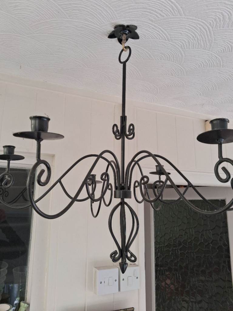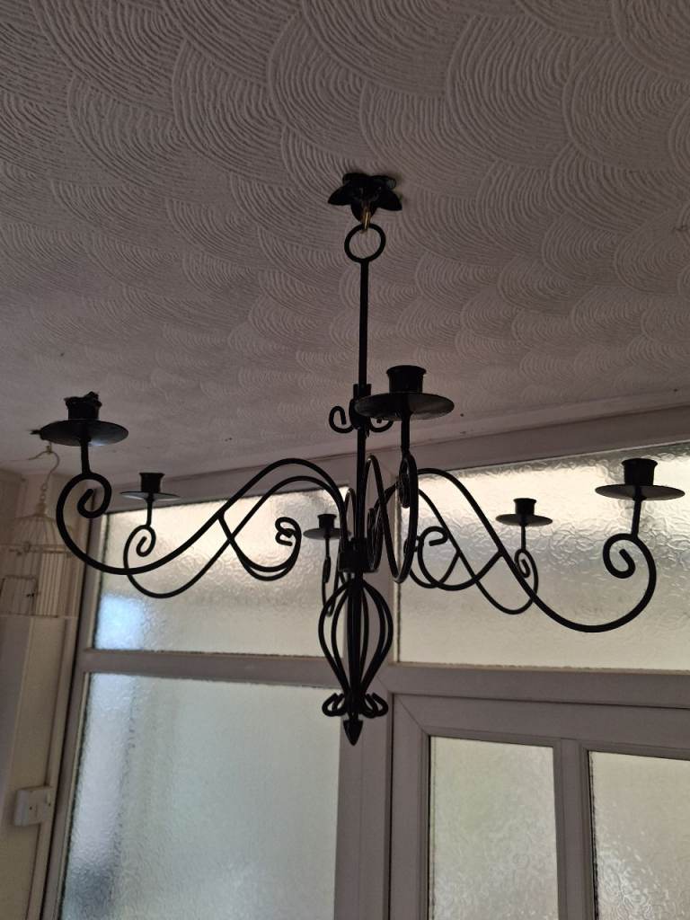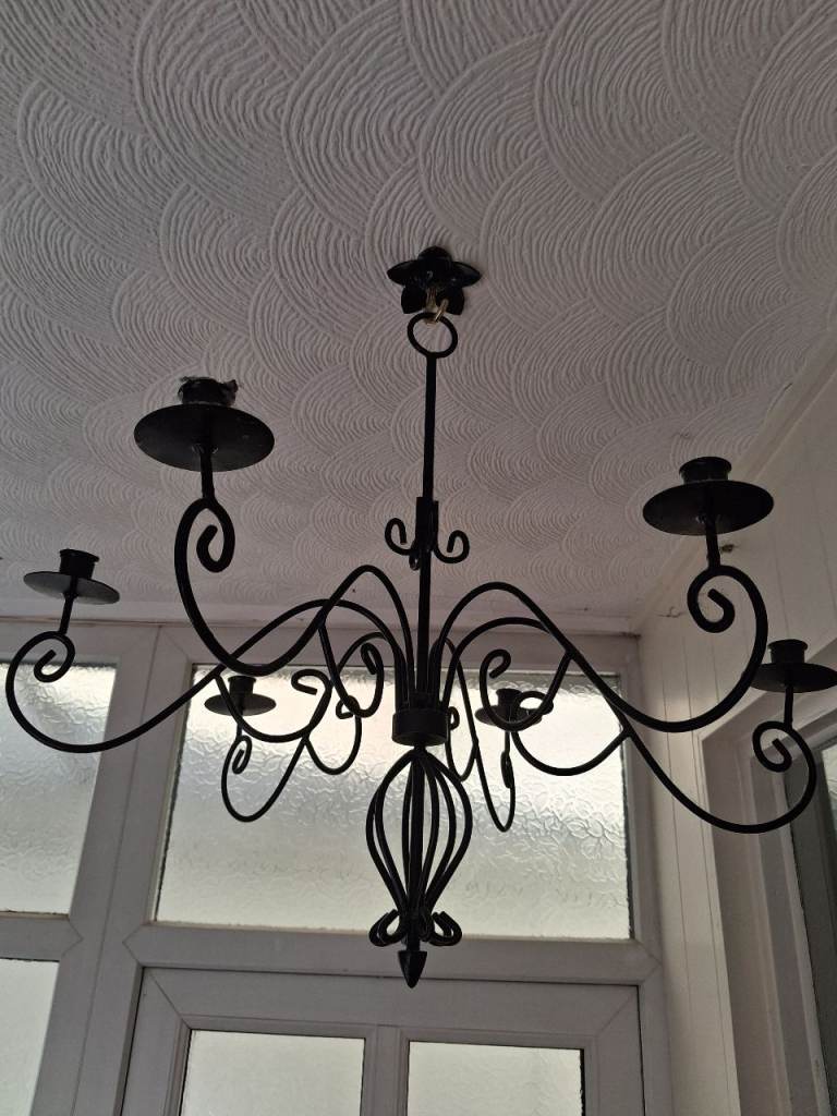 Posting for 4+ yearsBlack metal 6 arm candle holder chandelier