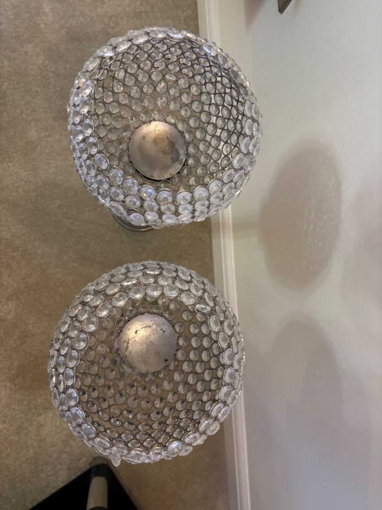 Posting for under a monthCrystal globe candle holders x2