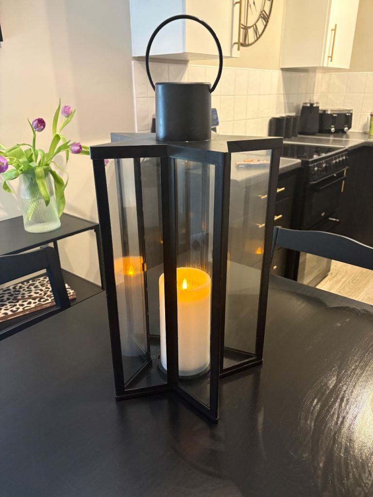 Large black star shaped Candle Lantern 58cm tall vgc