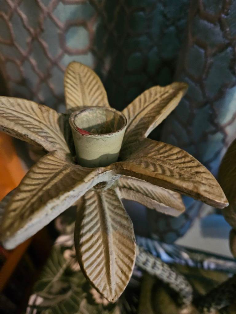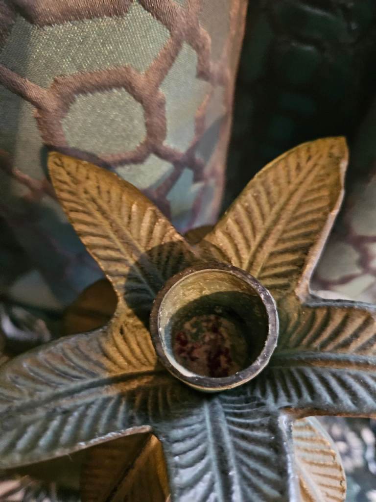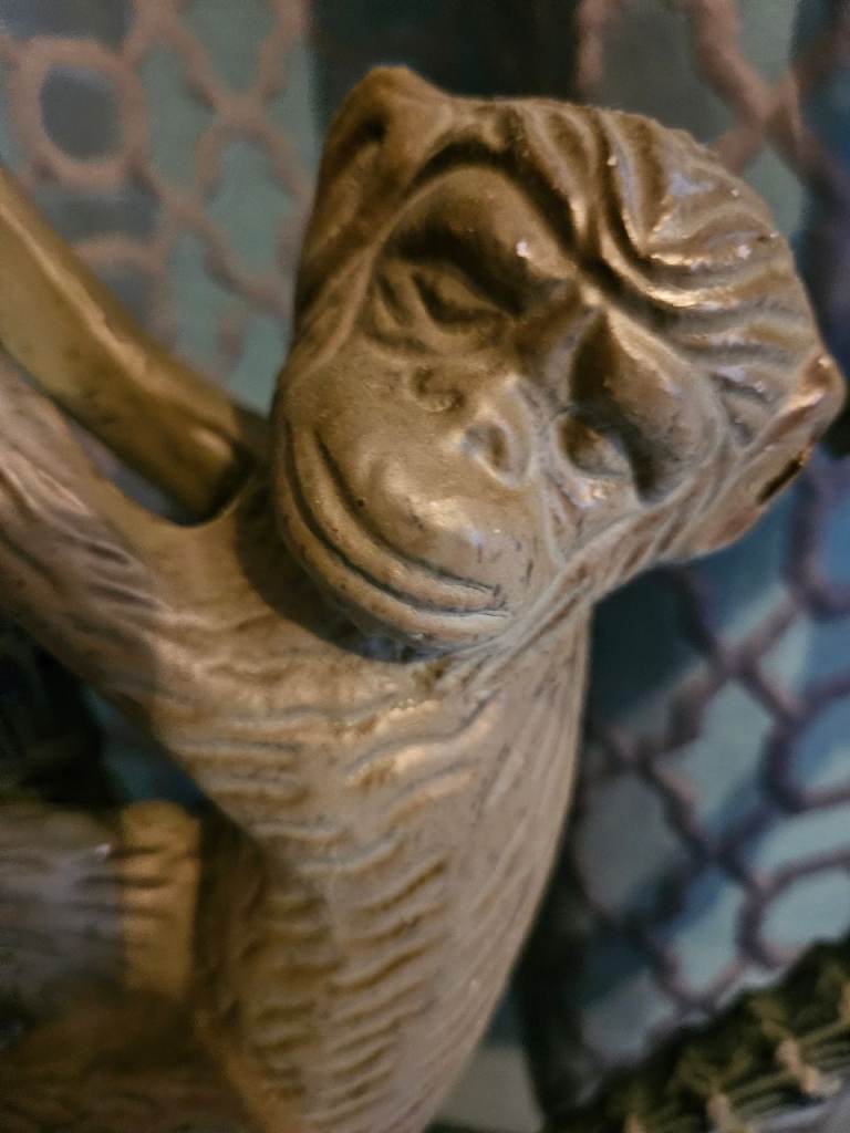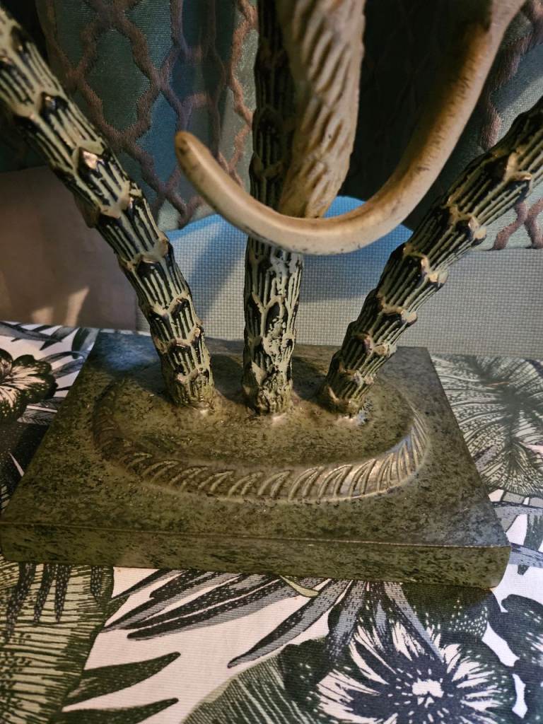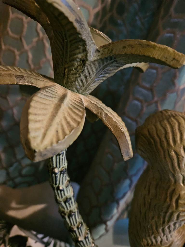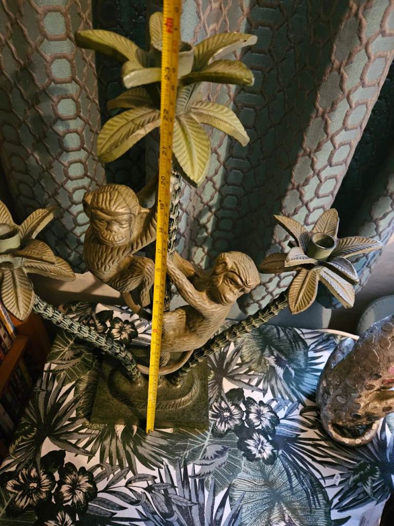 Large green metal vintage style art deco palm tree monkey candle holder candelabra. Absolutely stunning very heavy piece can't find an identical match anywhere