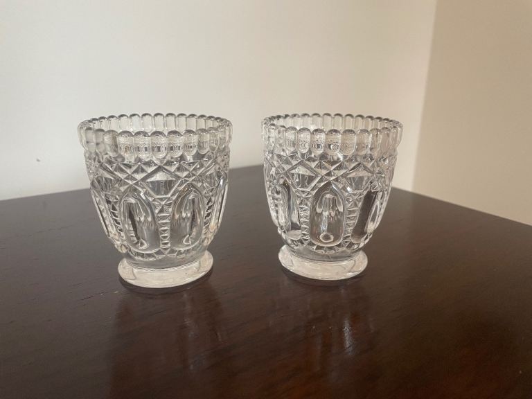 Sweet pair of vintage glass tealight holders / tiny vases. Could also be used as trinket holders for rings and other small precious items.