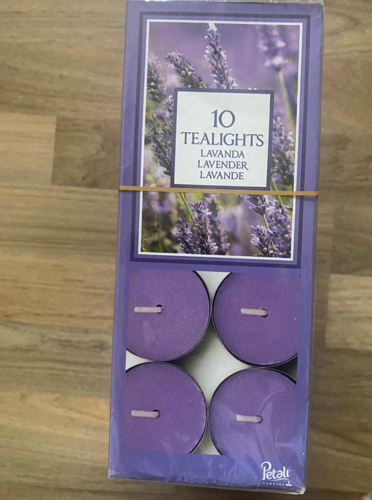 Lavender fragrance...10 boxes each box contains 10 candles... u can buy 5 boxes on half of given price of 10 boxes.