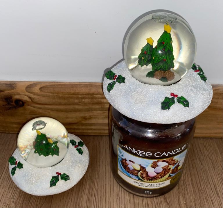 Two Yankee candle Christmas candle snow globe toppers, £20 each or £35 for the two