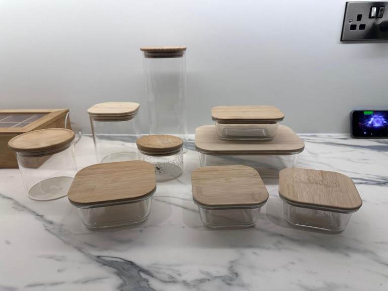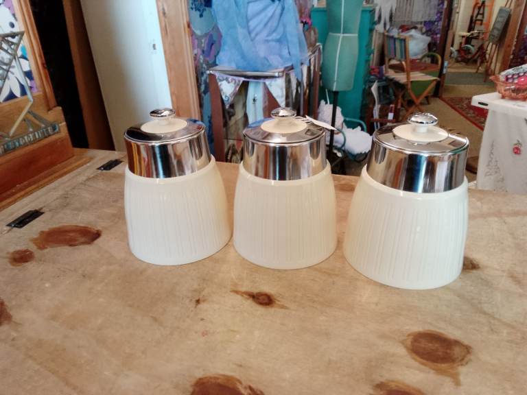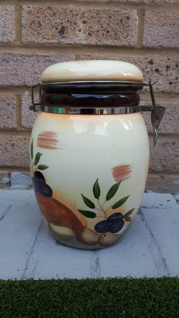 Beautiful Ceramic Biscuit Barrel Mediterranean style Black Olive & Wine Bottle Tile Kitchen Storage