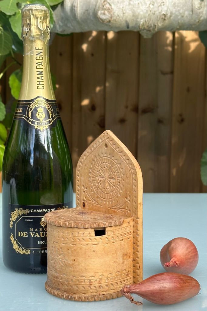 Part of our collection of kitchenalia we got this from a brocante at Saint-Quentin in the Aisne region and have used it to store sea salt.