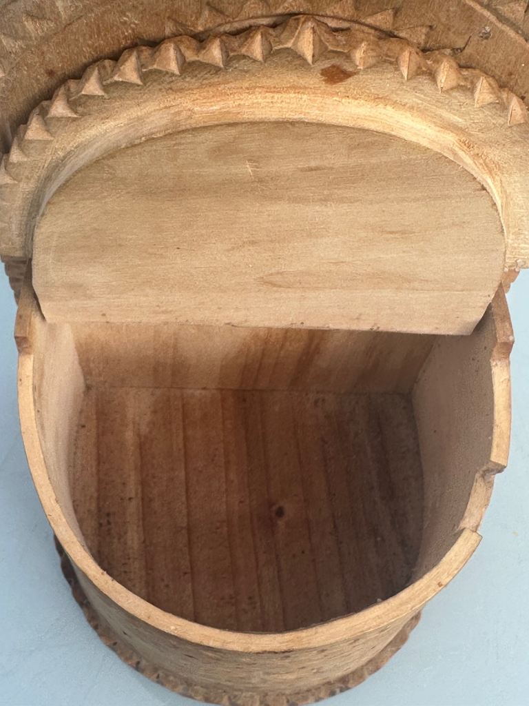 VINTAGE NORWEGIAN CARVED SALT BOX, SALT CELLAR, SALT PIG - SCANDI KITCHENALIA - WILL POST!