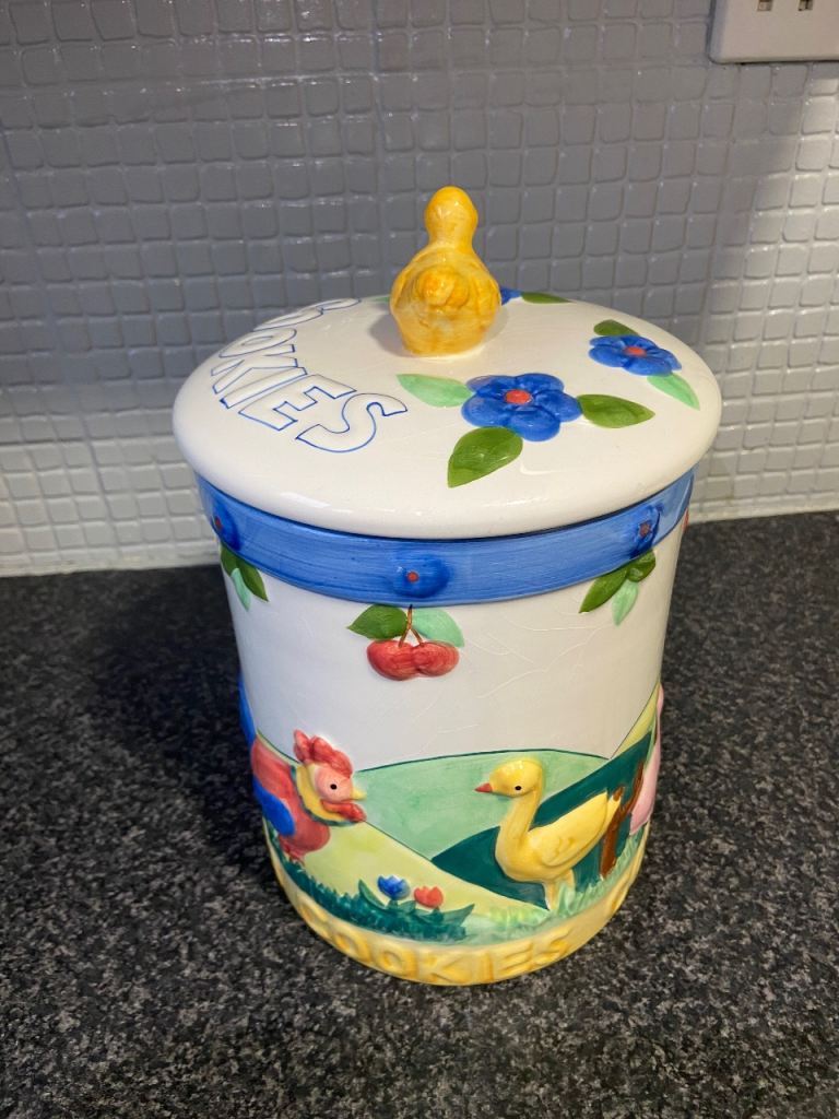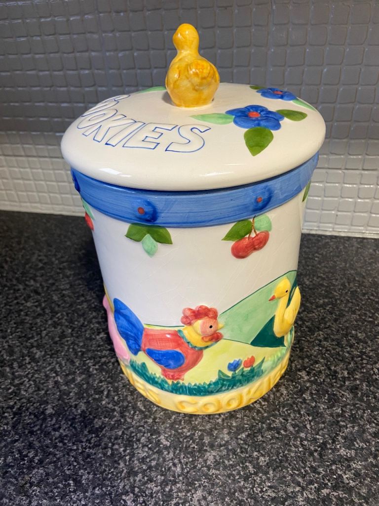 Vintage 1990s, Rayware Housewares, large ceramic lidded cookie jar.
