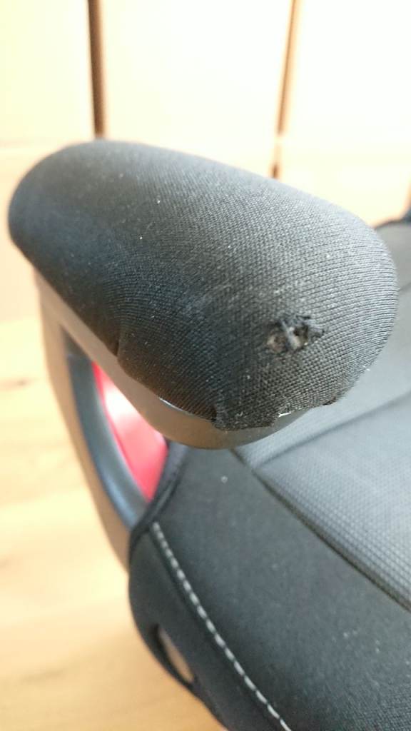 We have 2 of these booster seats available. Both were lightly used in our two family cars before our son outgrew them. Both fabric covers have been removed, machine-washed and refitted. The only minor defect is a small fraying to one of the arms on one of the seats (please see photos).